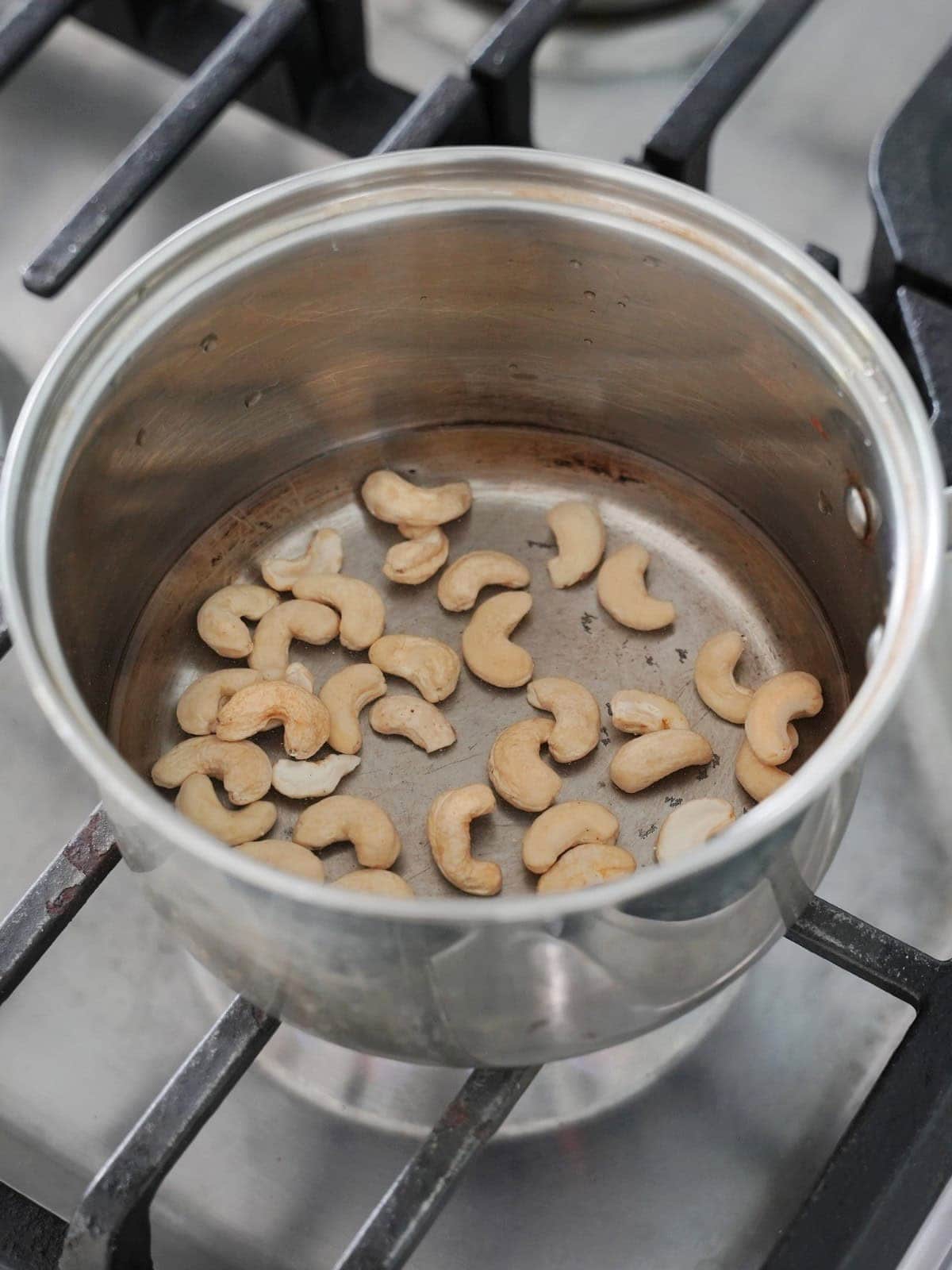 - Thoroughly rinse (and remove debris), then soak the lentils and cashews for at least 2 hours. Drain well. If you forget to soak the cashews, simply boil them for a few minutes to soften them.